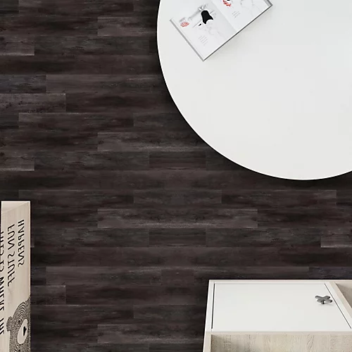 - Wall Art Wood Look Vinyl Flooring with a blend of Barnwood Oak comes in different styles, this Umber Brown colour fits the colours of your interior perfectly. Easy to install and with double sided tape you can peel and stick the planks to the floor and your room will be ready in no time!