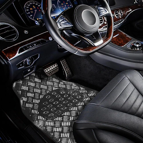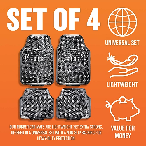 - Super heavy duty, metal look silver car mat set by Roadster, a quality name in car accessories