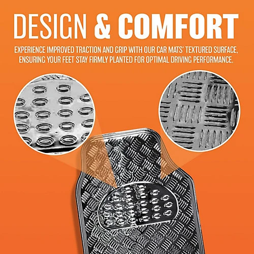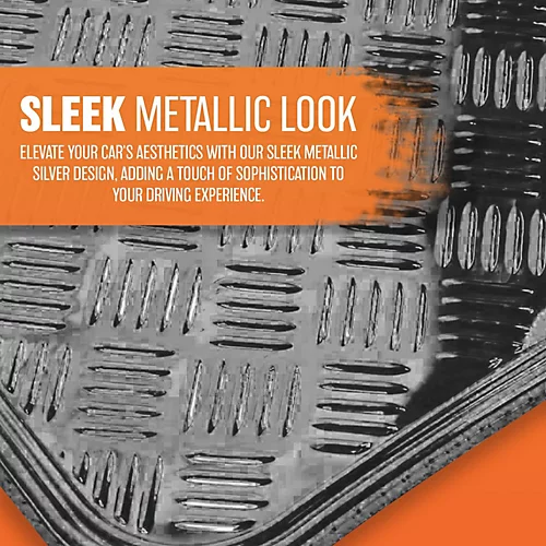- Super heavy duty, metal look silver car mat set by Roadster, a quality name in car accessories.