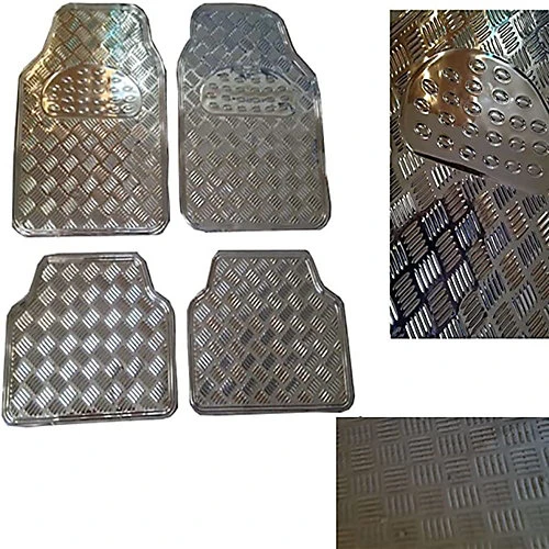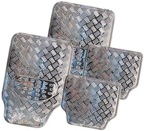 - Set of 4 mats for full coverage restyle your vehicle with new metallic diamond plate mats. Durable vinyl with anti colour-fade scratch resistant finish. Protects original carpet against spills, stains, mud and debris Universal shape to fit most cars, suvs, trucks and vans. No-slip grip – rubberized nibs on the bottom and traction holds on top so the mat does not move and your foot stays in place