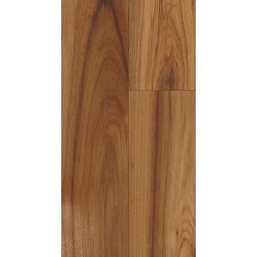 This laminate flooring has an attractive brown hickory effect finish, high gloss surface finish and bevelled edges. Each plank uses a simple drop lock click system, so installation is simple and it can be used with underfloor heating to keep your home warm.