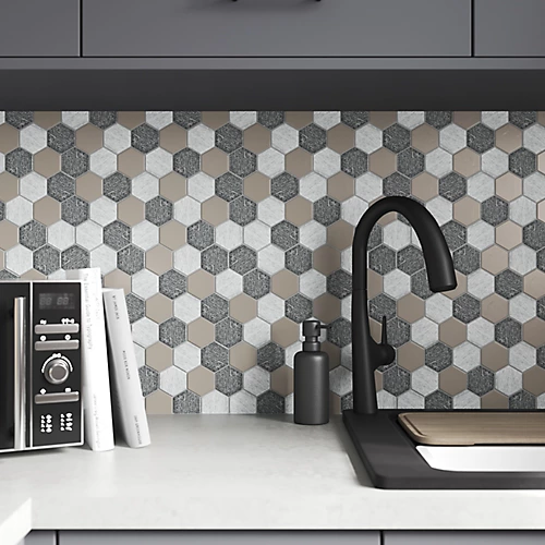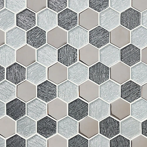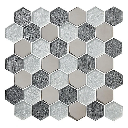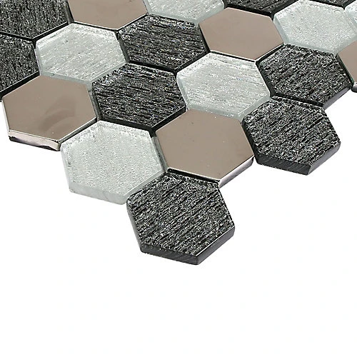 - Transform your home interior with the Cadro mosaic tile. This mosaic combines metallic and glass ceramic pieces in a hexagonal shape, for a contemporary and graphic finish.