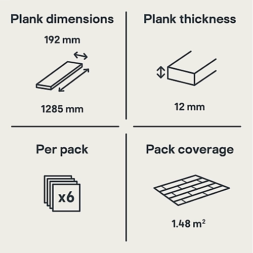 Dartmoor laminate flooring by Eurohome is an attractive grey oak effect plank design with a matt surface finish. Each plank uses a click fitting system, so installation is quick and simple.