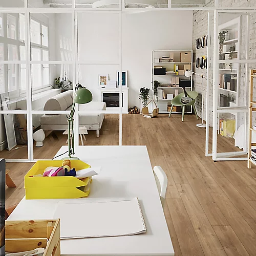 - In an attractive dark oak effect plank design with a water resistant surface. Each plank uses a drop-click fitting system, so installation is quick and simple.