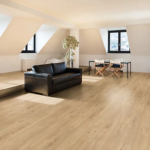- In an attractive oak effect plank design with a water resistant surface. Each plank uses a drop-click fitting system, so installation is quick and simple.