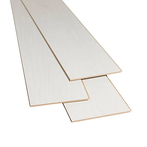 This laminate flooring has an attractive Oak effect finish. Each plank uses a simple click system, so installation is simple and it can be used with underfloor heating to keep your home warm.