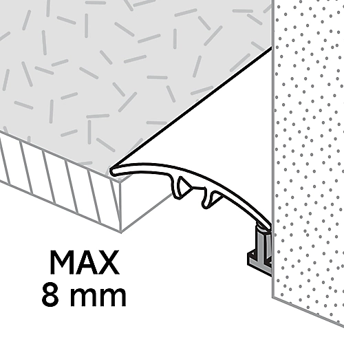 - For covering expansion gap between 2 adjacent flooring of equal or different heights. Also effective along walls or skirting boards (with included end wedges)