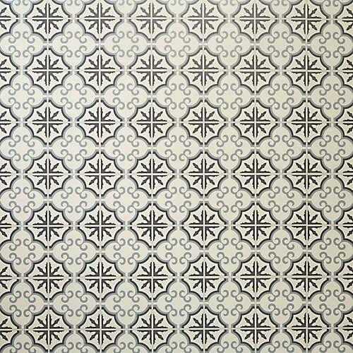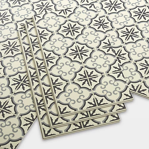 - The decorative embossed pattern of these vinyl tiles replicates a classic tiled floor