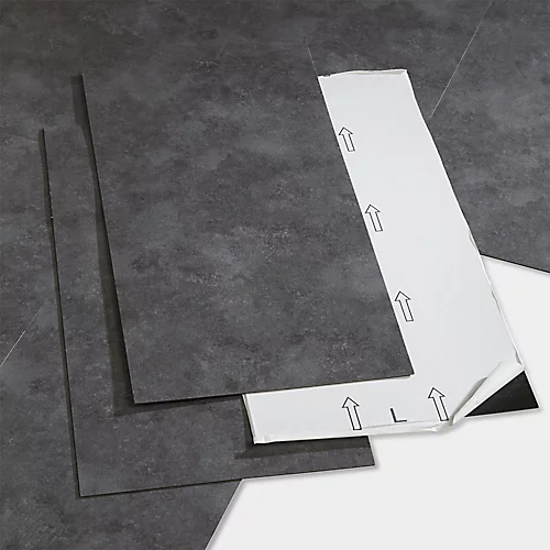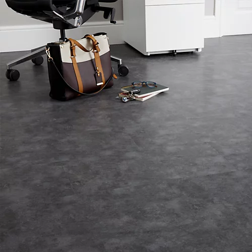 - The embossed tile pattern imitates a classic dark grey concrete floor