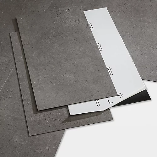 - The tile embossed pattern imitates a classic mid grey concrete floor
