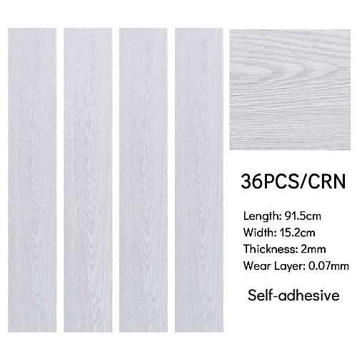 Quality PVC construction, highly resistant to scratches and water. Resembles real wood grain, the flooring looks natural and realistic. Super easy to install with the peel and stick backing. Simple maintenance by sweeping and mopping with a damp cloth.