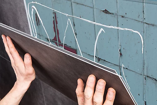 Stylishly on-trend waterproof wall cladding exudes a natural ambiance for your bathroom. The authentic grout line can be seen and felt, but you no longer have to deal with dirty or crumbly grout. Very easy and quick to install, the tiles can be cut to size using a normal saw. You can choose to have the tiling in a brick pattern or in a straight lay pattern.