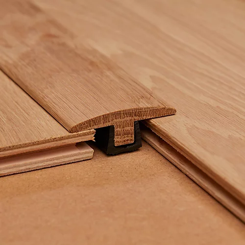 - Carefully measure the gap you intend the profile fill. Seperately, cut the PVC base profile and hardwood top section to the required length. Additionally, you may find that it is necessary to cut in/trim the profile edges to fit within a door frame. Screw and/or glue the PVC base channel to the substrate floor. Once the base channel is fitted, tap the top profile in to place using a rubber mallet or similar.